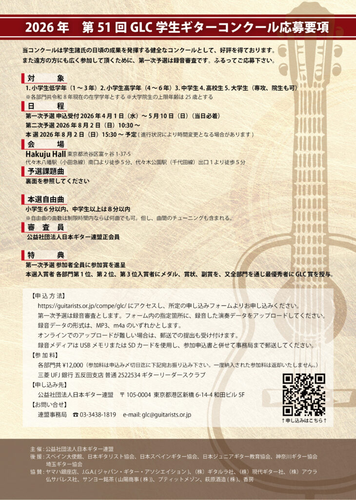 連盟事務局 ☎ 03-3438-1819 e-mail: glc@guitarists.or.jp